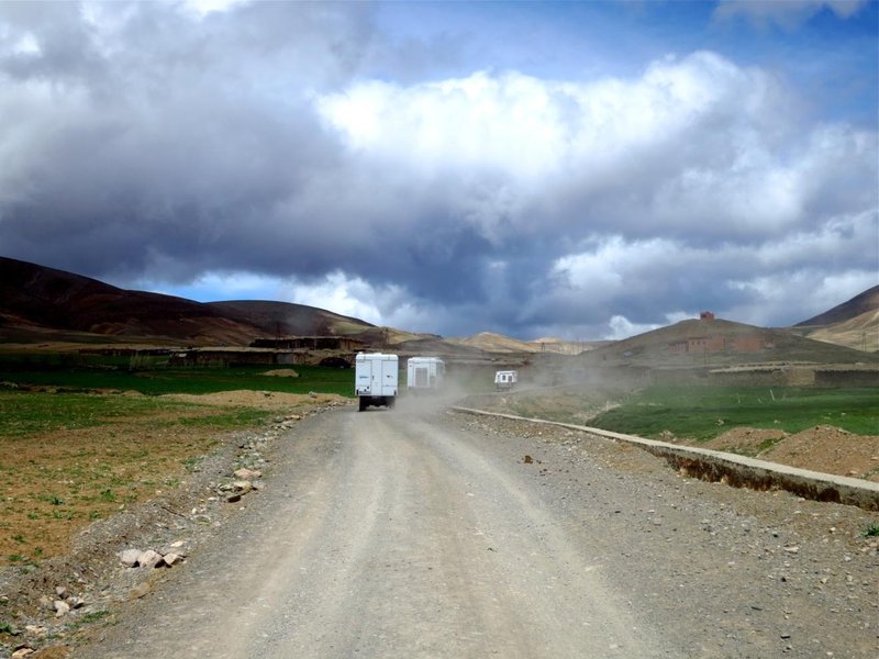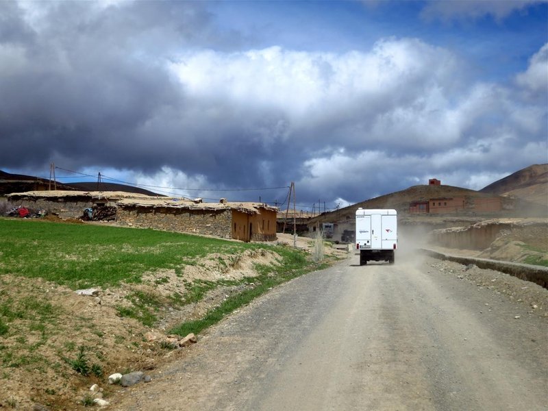 Weiter durch den Atlas. Die Landschaft wandelt sich. Das Grün schwindet. Es wird felsig. Wunderschön! ... Auf der anderen Seite scheinen die Menschen hier noch ärmer zu sein. Trotz frischer Temperaturen sieht man kleine Kinder ohne Schuhe.