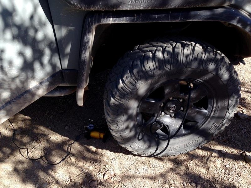 Erst mal Luft raus (später natürlich wieder rein - siehe Bild mit dem "Monster"kompressor) und dann rein ins's Vergnügen! Sandfahren ... Es gibt wenig was so viel Spass macht.