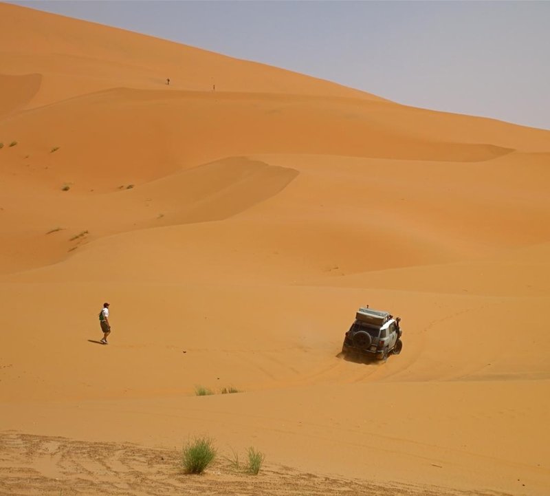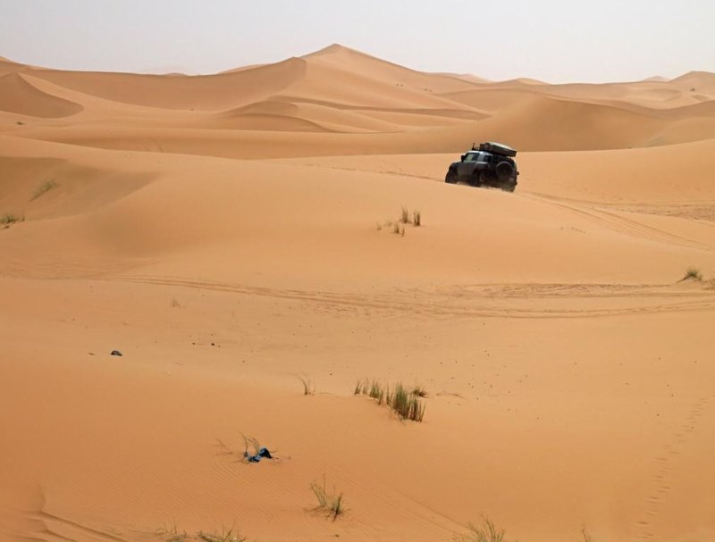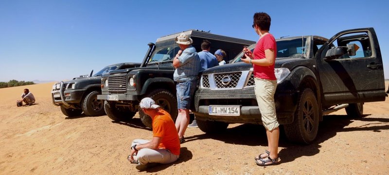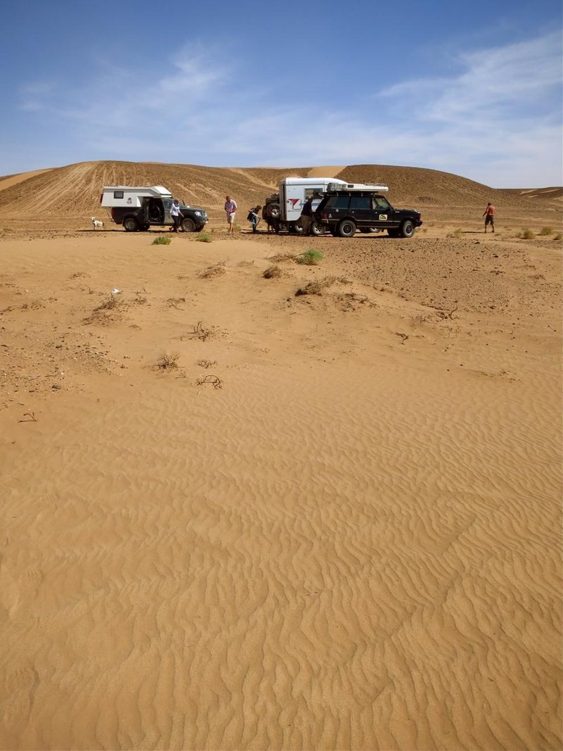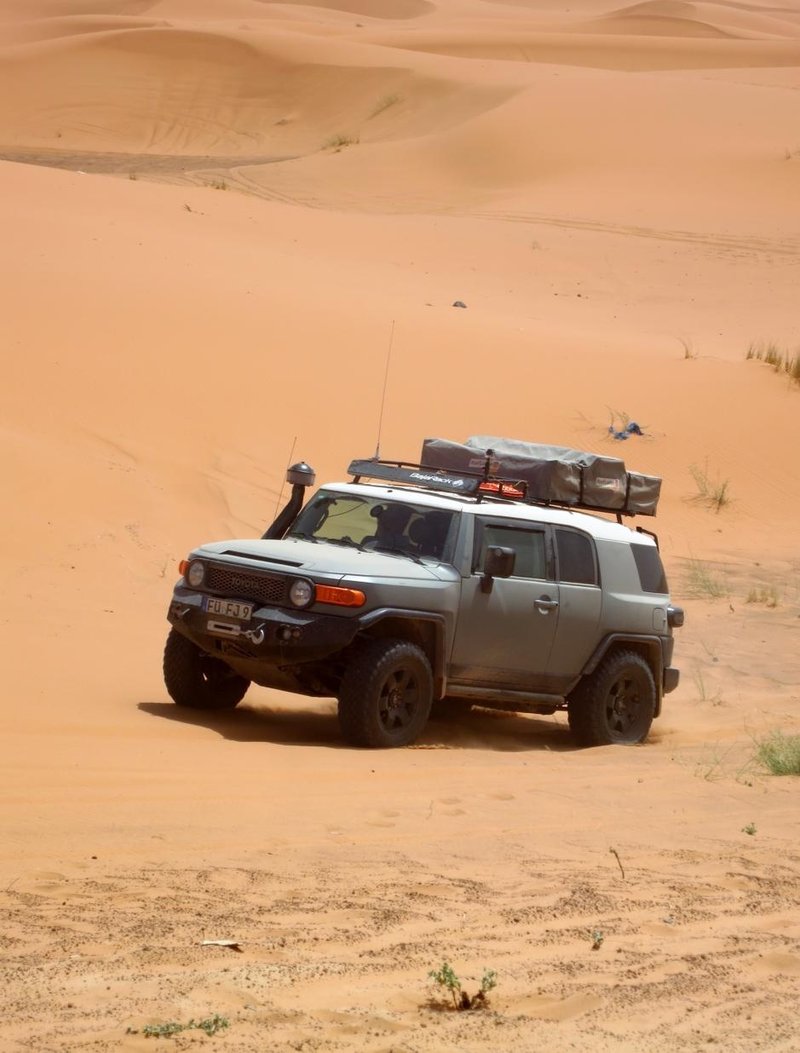 Es war das erste mal mit dem FJ. Ich war nicht sicher wie er (und ich) sich schlägt im relativ tiefen und weichen Sand. Auch ob die MTs da so gut sind ist ja eher umstritten. Fazit: Ging super. Hat sich mit seinen 242 PS genial durch den Sand gefräst. Über den Verbrauch reden wir mal nicht. Jedenfalls haben wir uns nie festgefahren und durften mehrfach ADAC für den Rest spielen.