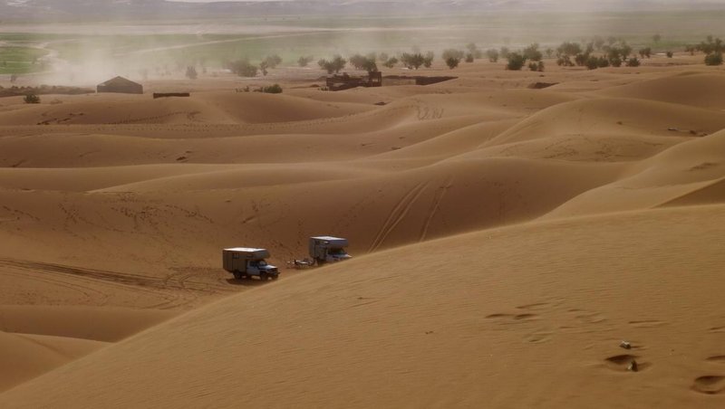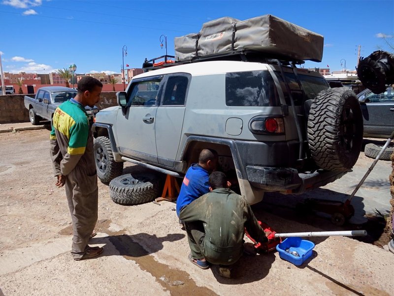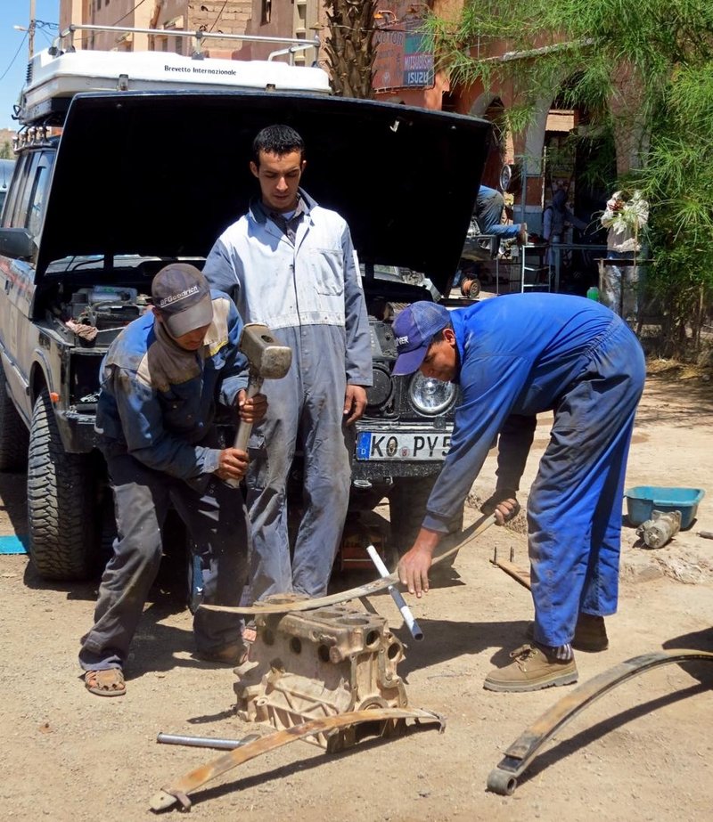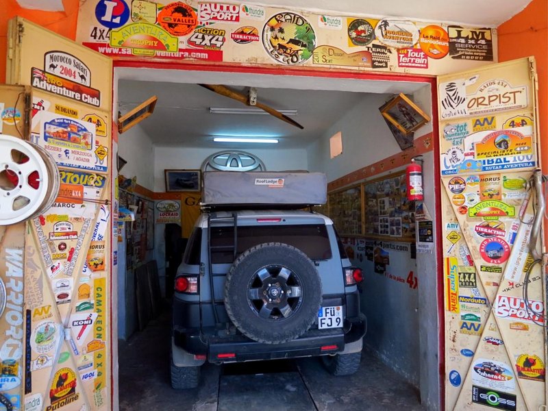 Einige Tage Aufenthalt in Zagora. Von da aus wollen wir in den Erg Chegaga. Nettes Städtchen. Fotos vom großen Markt folgen noch. ... Ohne besonderen Anlass ging es noch zum Check in eine der bekannten 4x4 Werkstätten an der Hauptstraße. Ergebnis: Feder in Ferder System an der Hinterachse für quasi kein Geld und voller Fahrzeugcheck.