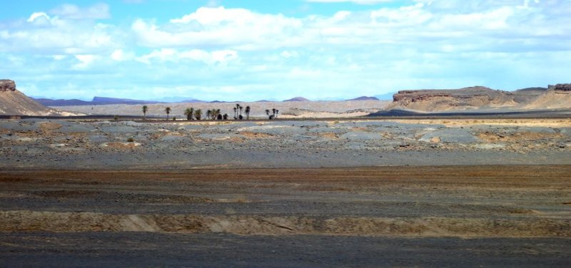Weiter durch die Wüste in Richtung Zagora durch das Draa-Tal. Sand, Felsen und Oasen.