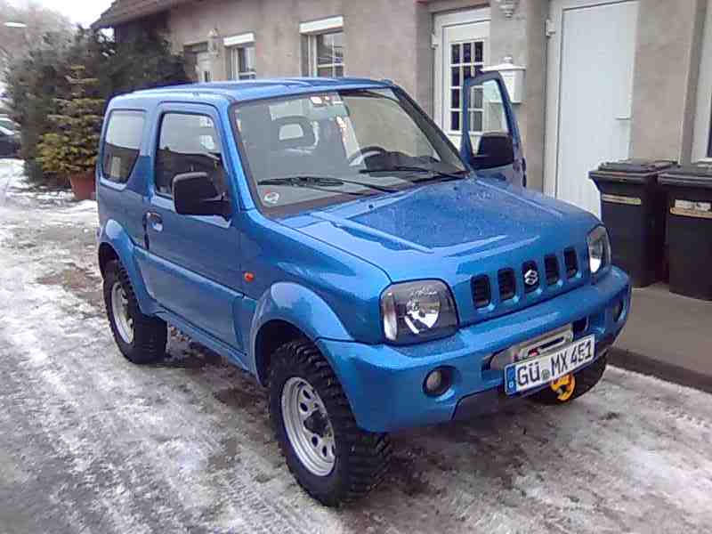 Verkaufe mein Jimny . Hatt ne 6t rotfuchs Winde mit kunstoffseil , 50mm trailmaster fahrwerk . 195R15 Recip reifen 5 stück . Km laufleistung 70000 . 2 vorbesitzer mit mir . Zahnriemen , wasserpumpe , kerzen radlager hinten bei 65000 km gewechselt . erst zulassung 98 . Anhängerzug . Mängel: scheibe hatt ein Riß . und im kofferaum ist ein rostloch .Preis 5300 euro .Bei intresse tel. 01735729838 oder mail .