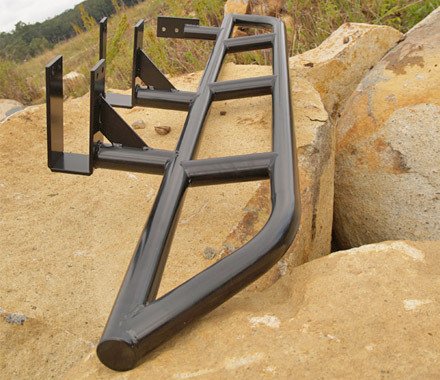 Hab so einen Rockslider mit 90er Rohr gebaut. Damit ließ sich das Fahrzeug mit dem Hi-Lift problemlos anheben. |