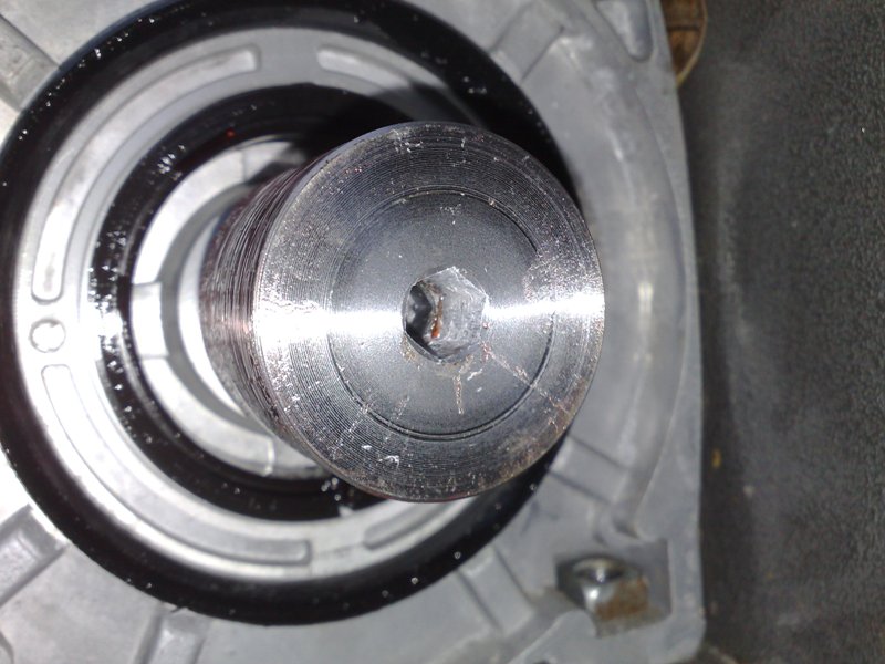 | Grizzly hat folgendes geschrieben: |  	  | Die Antriebswelle vom Motor zum Getriebe besteht aus einem 8mm-Sechskant. Der ist motorseitig nur eingesteckt und hat sich im Antriebsteil rundgedreht  . Aber warum? Bei genauem Ausmessen mußte ich feststellen das die Antriebswelle 2,5 cm zu kurz ist. So konnte die Welle lose hin und her rutschen bis sie nur noch minimal in der Führung motorseitig saß und diese runddrehte. Jetzt werde ich einen längeren Sechskant besorgen und Motorseitig festheften.