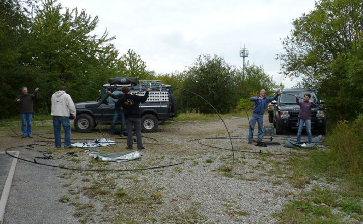 Einige Wochen später war das Team dann komplett. Auf einem ersten Orgatreffen lernten wir uns kennen und machten uns mit unseren Aufgaben vertraut. Strecken wurden vorgestellt, organisatorisches besprochen, das Equipment vorgestellt und der Umgang geübt. Bei einem zweiten Orgatreffen wurde dann auch noch alles ausprobiert: ein kleiner GPS Kurs wurde abgefahren und der Umgang mit den GPS Trackern geübt, Zelte wurden aufgebaut, die Autos wurden durchs Gelände bewegt usw.