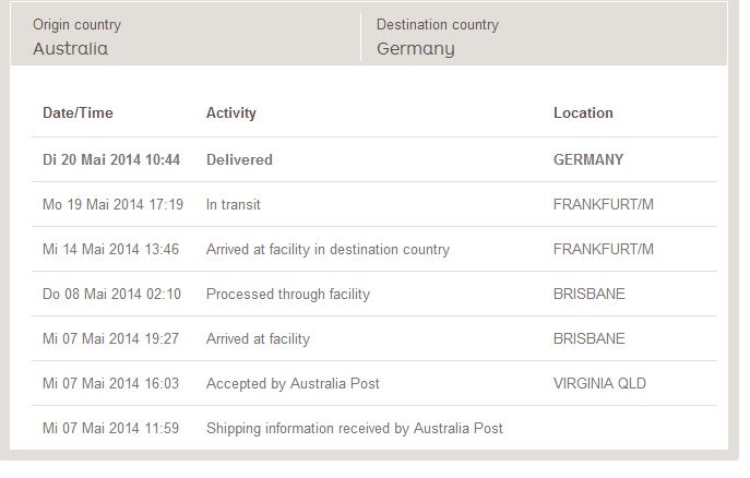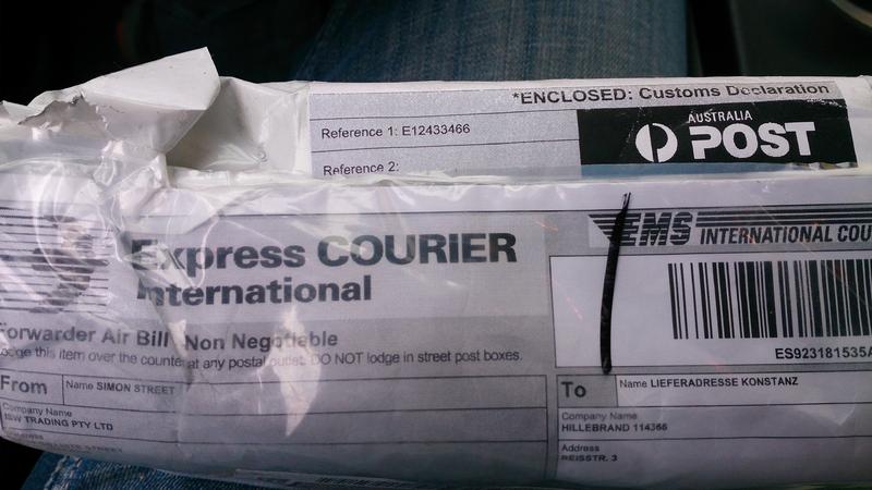 Hier ist das aus einem 1m3 NASA-Stahl Würfel von Hand Feingefeilte und in der Abendsonne des Ayers Rock von Hand geschmiedete Präzisionswerkzeug . Das Tracking verlierte sich in den weiten der Känguru Post und tauchte dann wieder, völlig unerwartet, in Frankfurt auf wo es wieder in den Katakomben des DEUTSCHEN ZOLL verschwand um Urplötzlich wieder in der Weltmetropole Konstanz aufzutauchen. Meine Wenigkeit wird sich heute ins Ausland wagen und dies abholen.