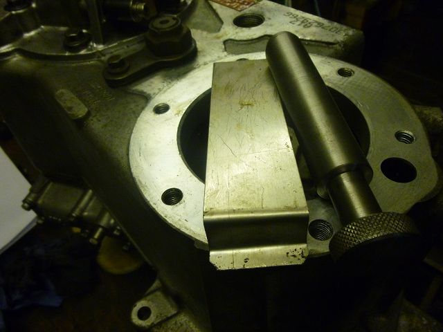 Anders als es das WHB vorsieht, montiere ich die Zwischenwelle von der Seite durch die Revisionsöffnung, wobei das Gehäuse mit der Frontseite nach unten auf der Werkbank steht.