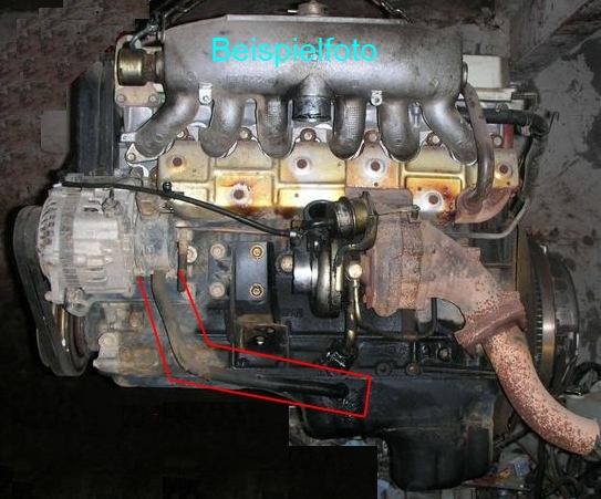 Auf dem zweiten Bild ist der senkrechte Verbindungsschlauch zw. Ölabscheider und Ölwanne zu erkennen (rotes Loctite).