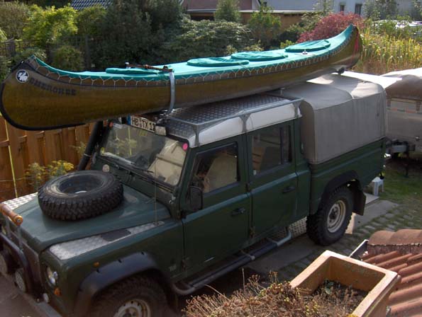 | Fahrzeuge 1. LR Defender 130CC  2. Sankey I  gerade verkauft 3. Sankey II  4. Sankey III  5. Kanu mit Tümmler  6. Fichtenmoped  |
