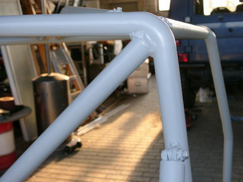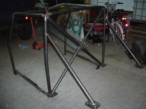 Und zwei Bilder vom kompletten Käfig, außerhalb vom Auto zum Lackieren zusammengebaut.