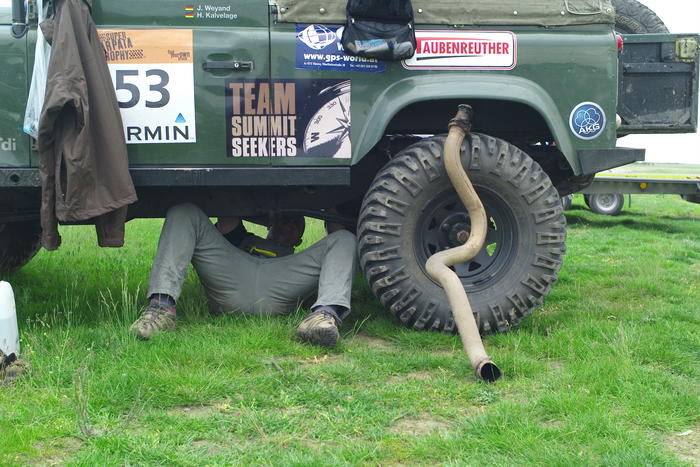 Der Auspuff wollte sich solch einen Stress nicht antuen und hat sich auf der
