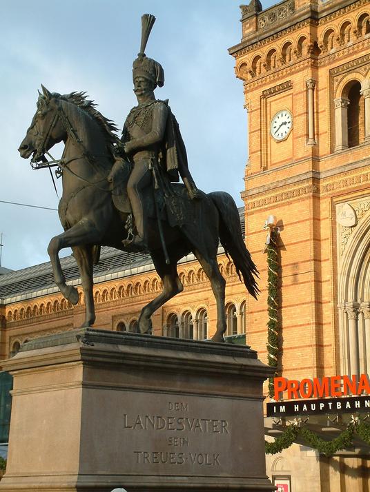 Okay, das kann man auch seltsam interpretieren - aber das ist ein völlig korrekter Satz. Auf dem Denkmal ist ja nicht das Volk, sondern der Landesvater zu sehen.  | |