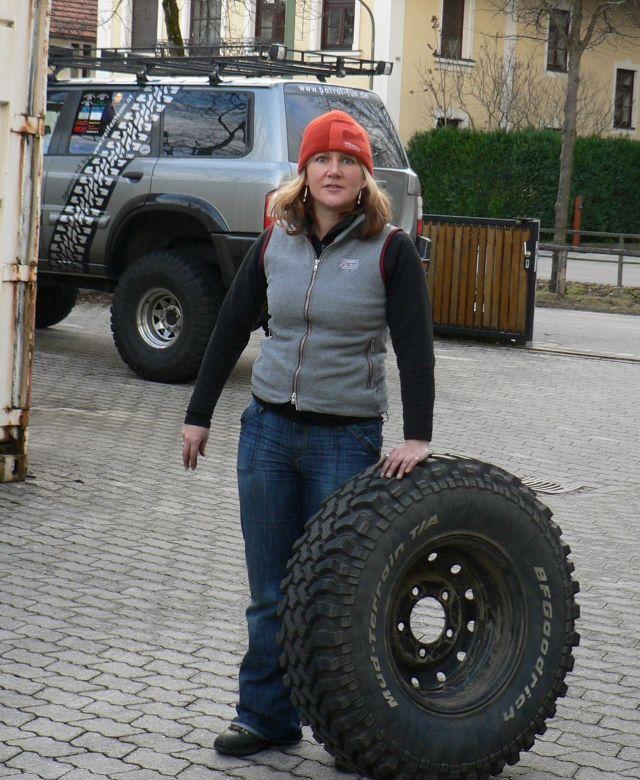 Die Anna schraubte daweil die Reifen an Ihrem Landy um