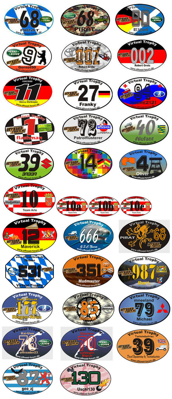 Daten können sein: Startnummer (obligatorisch), Name/Nickname, Hintergrundfarbe/-bild, Offroad-Forum-Logo, andere Logos,