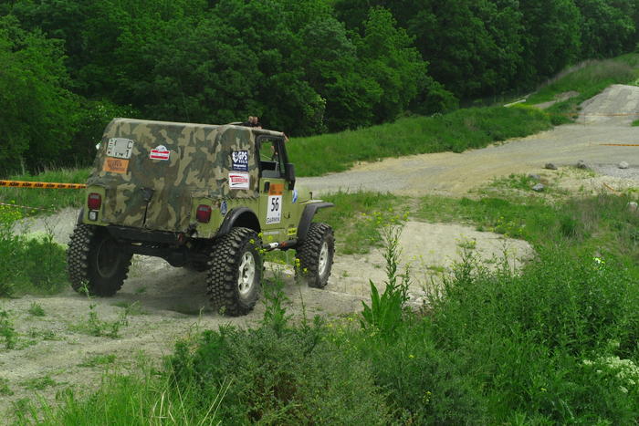 Nach einem Mittagessen im Schatten der getrennt voneinander aufgestellten Fahrzeuge – damit kein Equipment innerhalb eines Teams getauscht werden konnte, also quasi Parc fermé auf der Superkarpata – ging es in umgekehrter Zuordnung zum Floßbauen resp, in den Parcours. Leider war der Parcours vom Wühlen am Vormittag arg in Mitleidenschaft gezogen worden, so dass das erfolgreiche Fahren nur noch den ersten Teams gelang und danach viele an der einen oder anderen Stelle wegen Zeitüberschreitung aufgeben mussten.