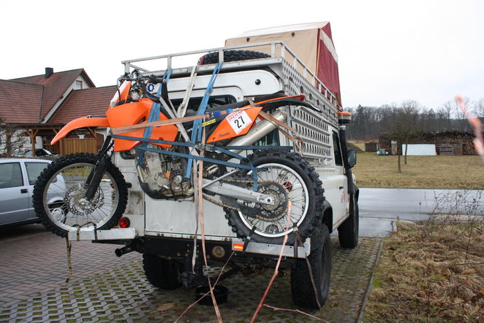Ach so, und im Falle eines defekts am Motorrad in Libyen müsste das Moto dann irgendwie auf dem Dach transportiert werden.