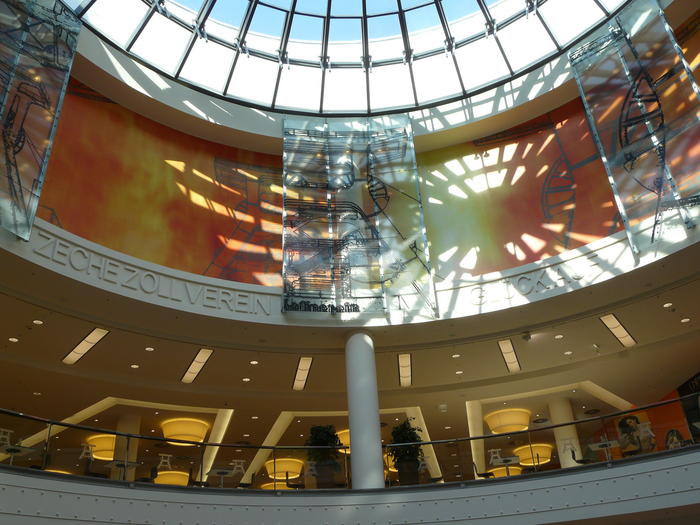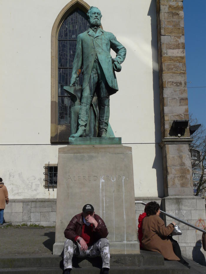 Und ein Blick nach draussen. Dort wo einst das Tafelsilber für den Endsieg eingeschmolzen und die dicke Bertha gebaut wurde, treiben sich heute die Schweden rum. Alte Kruppsche Fabrikhallen wurden zu Einkaufstempeln für desperate housewives und zu Kultur- und Begegnungsstätten umgebaut.