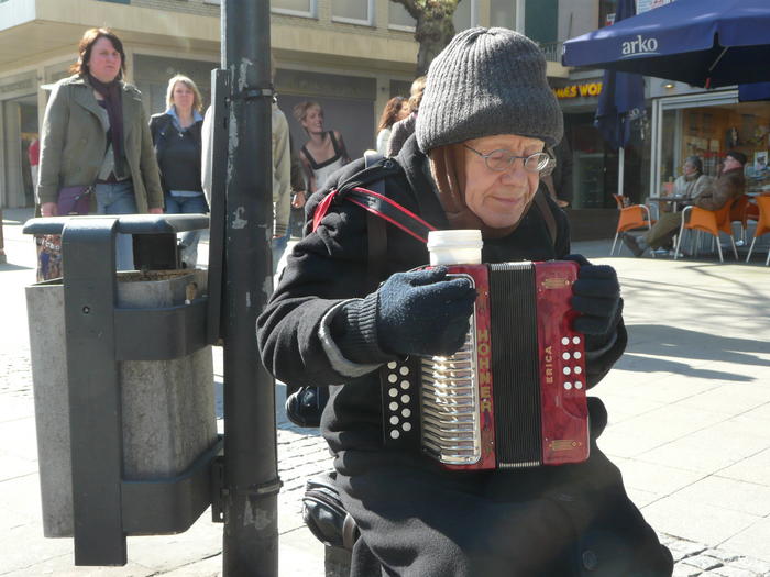 Er sitzt vermutlich mit seinem Akkordeon auf der Strasse bis er keine Kraft mehr hat. Ich hab ein wenig mit ihm getöttert. "Den Krieg habe ich überlebt. Die letzten Jahre werde ich auch noch schaffen." Alles Gute alter Mann.