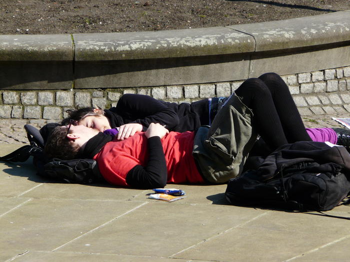 Ein Nickerchen auf dem sonnigen Burgplatz.