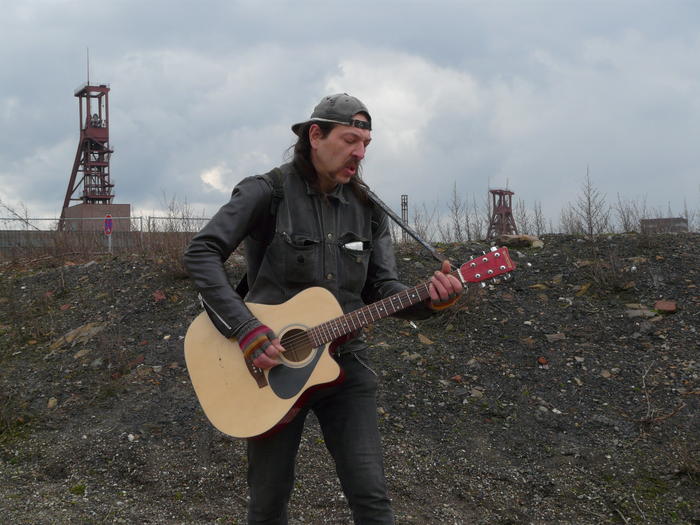 Ohne Mucke geht nix im Pott. Abseits der Geländes traf ich auf einen einsamen fahrenden Sänger. Ausser mir gab es keine Zuschauer und vermutlich verirrt sich an diesen abgelegenen Ort auch niemand.