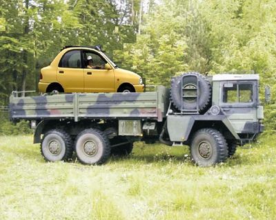 Wir verwenden zwei identische Mazda 121 DB 1.4 16V, 54 kW um zu zeigen, dass man auch mit solch kleinen Kisten 7500 km quer durch Europa, Afrika und besonders die Sahara kommt.