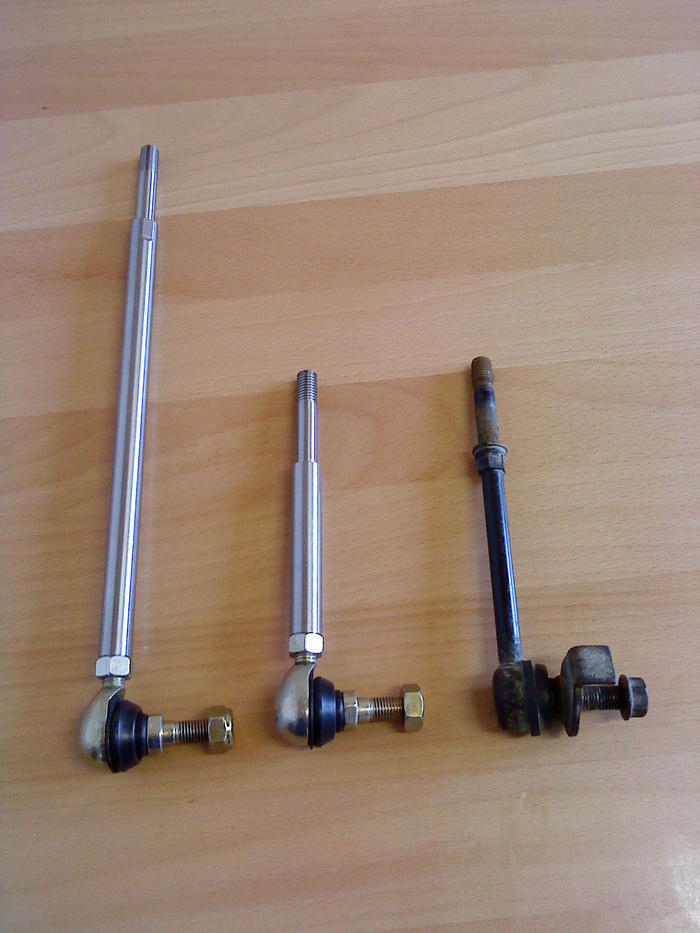Ja, sowas. Wenn Du´s entkoppelbar haben möchtest dann nimm die Dinger, bin mir aber relativ sicher das dich das schnell annervt ständig unters dreckige Auto zu kriechen um die wieder einzuhängen. Ich hatte jetzt an ne feste Koppelstange gedacht ohne Entkopplungsmöglichkeit. Die Entkopplung bringt ja nun nicht sooo überragend viel mehr Verschränkung.