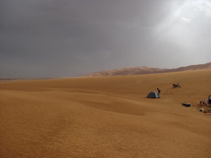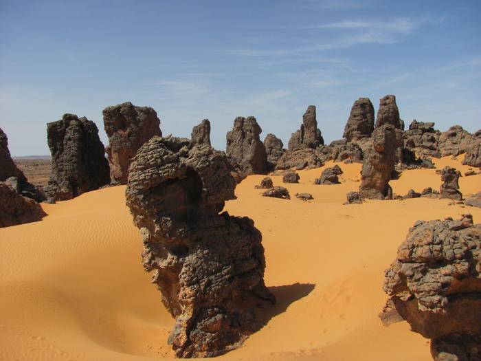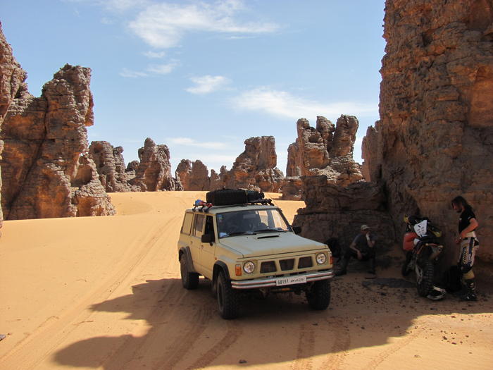 Es ging damit los daß nach dem letzjährigen Libyentour ein geschätztes Forenmietglied dieses Jahr unbedingt mitfahren wollte , wenn wir denn eine Tour planen würden . Nichts leichter als das habe den Urlaub dann auch für diesen recht frühen Zeitpunkt Anfang Oktober mit eingatragen , dann schlief es irgendwie ein da der oben Erwähnte nicht mehr fahren wollte und auch niemand von der letztjährigen Truppe also kümmerte ich mich nicht mehr drum es wurde erst wieder aktuell für mich als der Oktober immer näher rückte und es sich sonst auch nichts alternatives getan hatte . Da bin ich auf meine neuen Mitfahrer gestoßen teilweis sogar noch aus der dierekten Umgebung also schnell mal die Leute treffen und sich mal etwas beschnuppern in meinen Augen hat da alles gepasst also schwupps neuen Pass holen , leider den mit den Biodaten da der alte schon am Auslaufen war , und mit der genaueren Planung beginnen . Ich machte die Route die anderen die Fährbuchung etc. es sollte in den Westen gehen geplant von Darj auf der schnellen Versorgungspiste in den Süden dann uber das Maghidet (das eigentliche Hauptziel)nach Al Awaynat weiter über den Akakus den Murzuq ankratzend nach Germa und über den Seen und Idri die schon im letzten Jahr befahrene sehr schönen Strecke zurück nach Darj . Wegen der frühen Fahrzeit war ich etwas skeptisch da ich mit zu heißen Wetter rechnete war auch so sollte aber später auch anderes Werden .