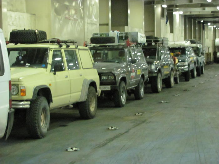 In den letzten Wochen vor Abfahrt hat sich schon wieder alles geballt wie immer , es haben sich noch drei weitere Mitfahrer gefunden also waren insgesammt zu siebt plus ein Hund , drei Autos davon ein Nissan , ein HDJ100 , ein Bremach und zwei Motorräder , eine der Motorradfahrer war auch letztes Jahr schon dabei .Gebucht haben wir diesmal die GNV da die Abfahrtszeiten erheblich besser passten für eine doch recht kurze Libyenreise ( mit der CTN hat man in Afrika immer zwei Tage weniger ) die Preise waren auch sehr gut dafür ist meine Meinung nach GNV ganz schlecht organisiert , endlose Einschiffung nervige Prozedere etc. und hat einen lahmen Schiff nur 20-21Knoten , wenn diese zwei gewonnenen Tage nicht wichtig sind würde ich die Chartage bevorzugen .