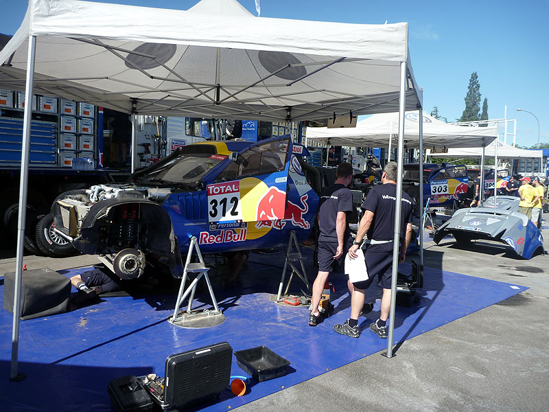 Silvester wird heute mit dem VW-Team gefeiert, mit gebremstem Schaum. Die Race-Touareg starten morgen schon auf die erste Liason, um am 2.1. auf die erste Wertungsprüfung zu gehen.