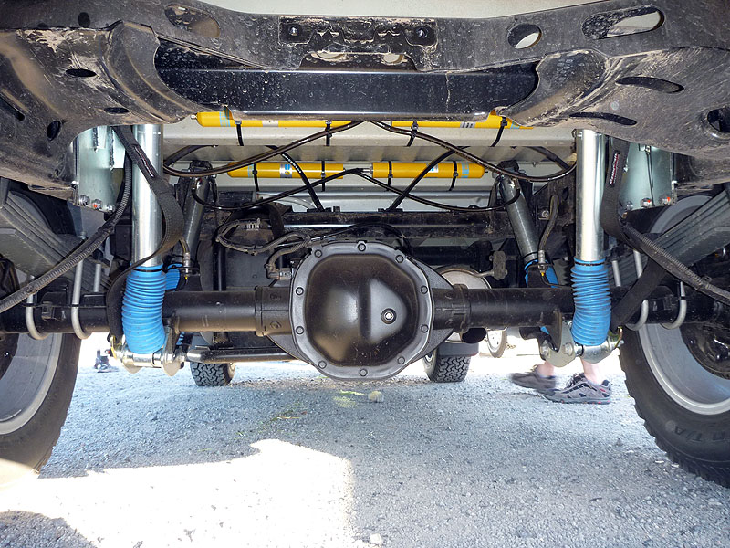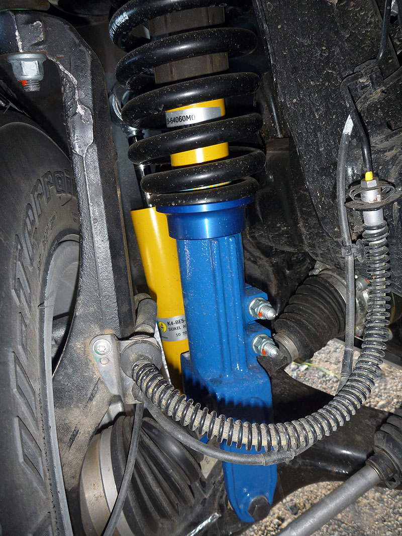 Das Doppeldämpfer-Fahrwerk ist eine Konstruktion der Firma Seikel und wird dort wohl auch zu beziehen sein, wenn der Amarok bei uns auf dem Markt ist. Einen Nachteil hat das Ganze: Wegen der vor dem vorderen Federbein montierten Zusatzdämpfer ist der Lenkeinschlag begrenzt, der Wendekreis ist deutlich größer als die serienmäßigen 12,5 Meter.