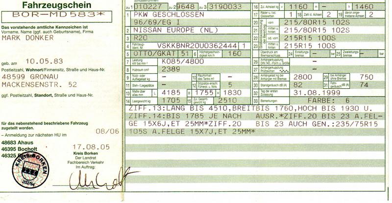 ich habe ein paar Fragen an Euch, ich habe mir einen Nissan Terrano II gekauft, der seit dem Nov. 2005 abgemeldet ist (siehe Fahrzeugschein) wie viel Zeit bleibt mir um dieses Fahrzeug dem TÜV vorzustellen ohne das eine Ganzabnahme fällig wird oder gibt es das nicht mehr (habe was von eine 7 Jahre Regelung gehört).