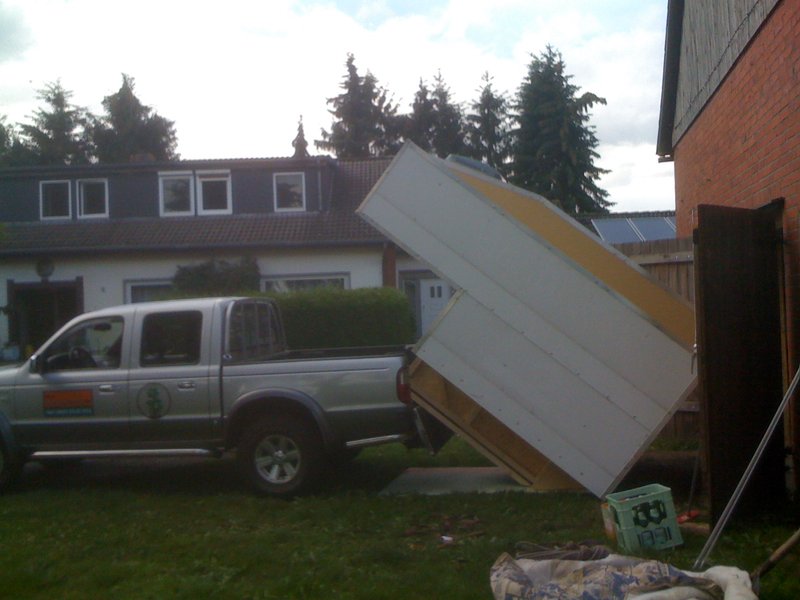 [b]...und schwupps ist die Kiste drauf (der Scheunenbesitzer im Bild simuliert nur! Wir haben schon zu zweit geschoben!