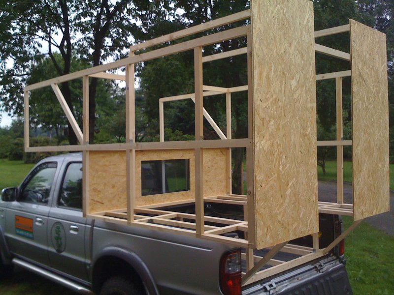 Coole Sache! Wenn das ganze schön verwindungssteif ist, spricht eigentlich nix dagegen. Hab letztens beim Zerlegen eines älteren Wohnwagens geholfen. War auch nix anderes als Kanthölzer, innen ne dünne Sperrholzschicht, aussen Alu und dazwischen Glaswolle... nich Stand der Zeit, aber funktioniert.