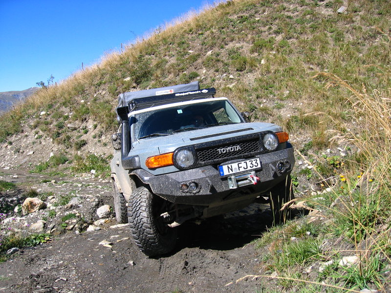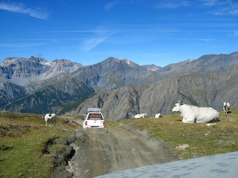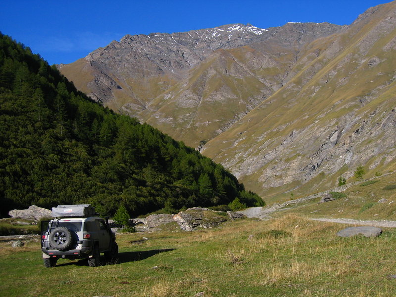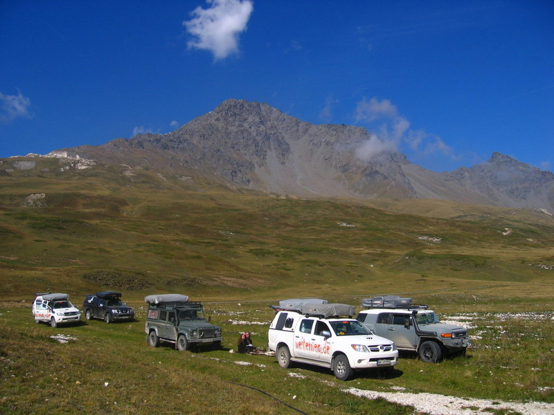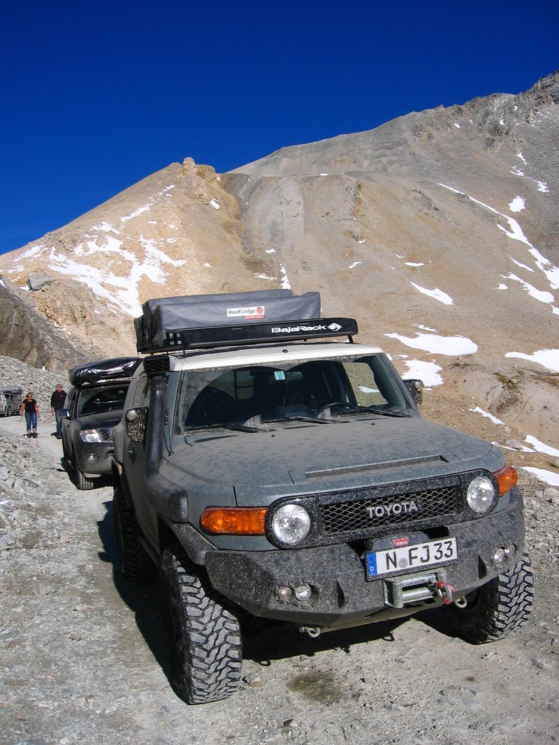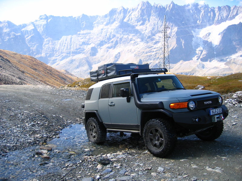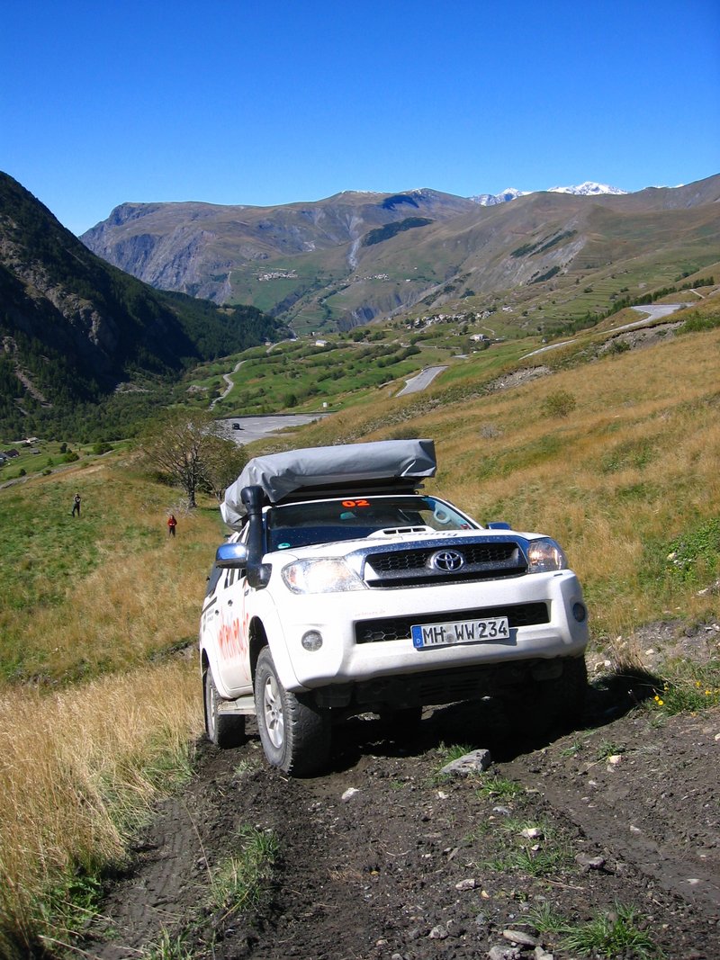 Mid september I did some offroad travelling in the western alps. I started on my own in the italian Aosta valley. Then I joined a group for the region whrere france borders italy. Apart from my FJ Cruiser the group consisted of 2 Toyota Hilux, one Nissan Navara and a LandRover Defender. Most parts of the trip were not really a problem for my FJC but the landscape was magnificent and in Europe there are nearly no places left where you can drive with your car offroad and up to 3.000 m. I’d like to show you some of my pictures.