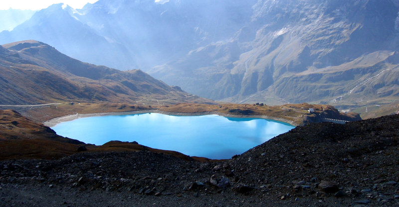 Stop at a lake before driving the 76 turns up to Mt. Sommeiller. Again higher than 3.000 m!