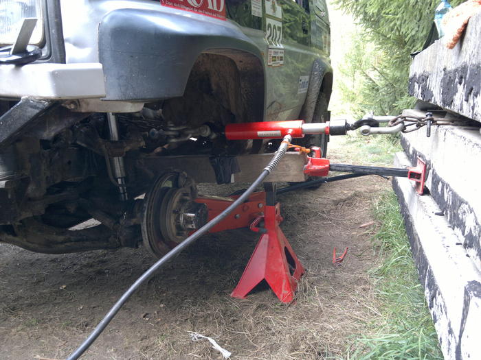 Der Highlift mit Holzbalken ist ja nur ein Widerlager, ein normaler Holzbalken in der richtigen Länge würde das gleiche tun - war wohl nicht zur Hand, alsp muss das Provisorium weiter improvisiert werden. rotfl