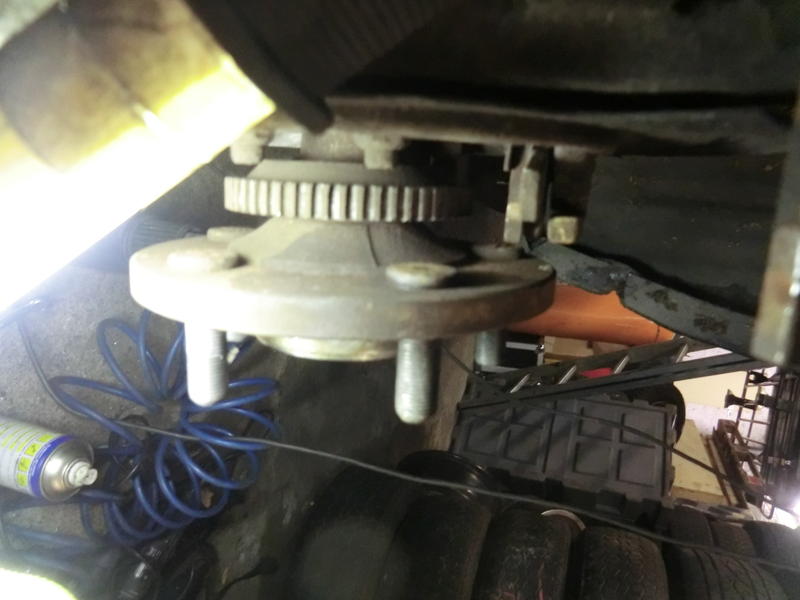 dann an das linke rad gemacht. 4 Muttern gehen auch mit hebelgewalt runter. aber die 5te hat es dann in sich! die 19er nuss rutsch über...