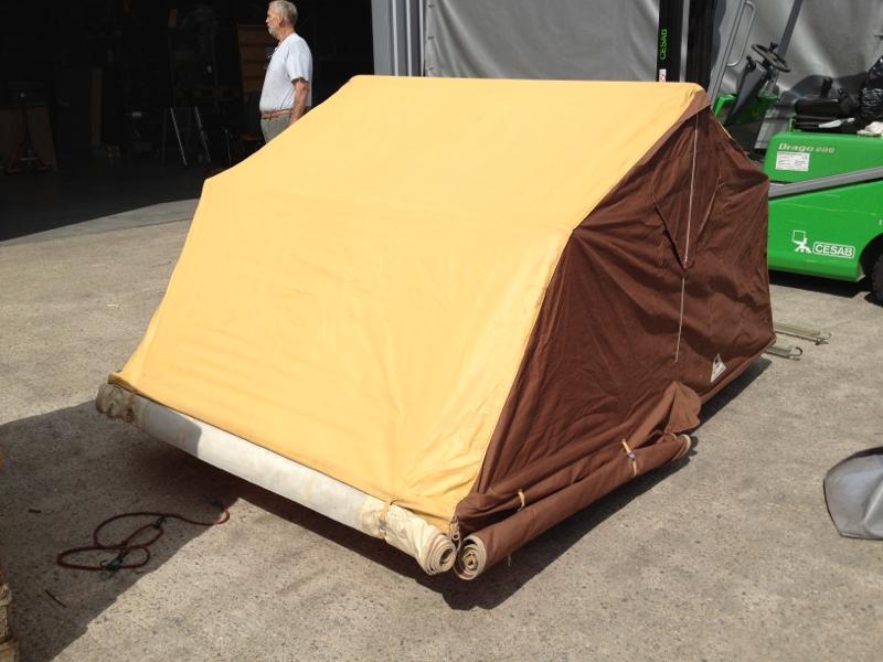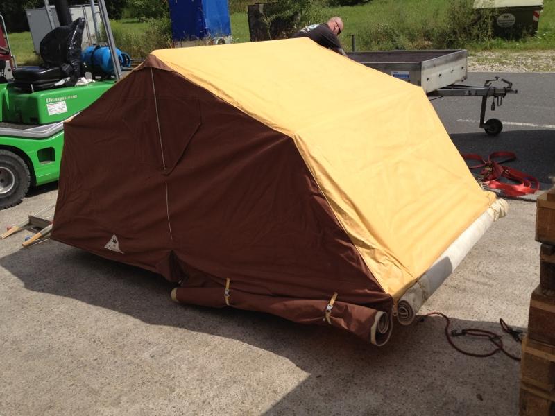 Sehr schön, so muss das aussehen. Was ich immer sehr angenehm fand war dass man auch die "Rückseite" öffnen kann und so an z.B. Dachkiste etc kommt. Fällt zwar bei Quermontage weg, aber macht auch so ein sehr angenehmes Klima wenn man die Aussenplane hochrollt. Überhaupt fand ich es faszinierend dass es in dem Ding so gut wie kein Schwitzwasser gibt.