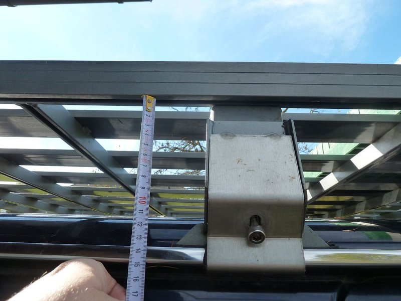 Abstand Dachrinne zu Unterkante Dachträger ca 14cm (mögliche Verstellung ca. 13-18cm)