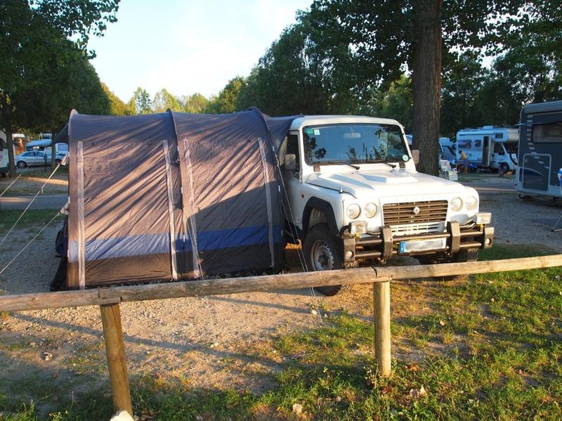 Den Namen unseres Zeltes habe ich gerade nicht im Gedächtnis, es wird aber noch immer mal dort angeboten.... die Preise variieren je nach Anzahl der Schlafplätze um 250-400 EUR... und das beste: die auf dem Bild sichtbare Abspannung über das Santi Dach ist immer mit dabei... weil die meist entsprechend für Busse mit Regenrinnen gedacht sind. Sturmfest ist es auch, Aufbau gelang beim ersten mal ohne üben ca. um 10min herum (am Gardasee :-) ) | |