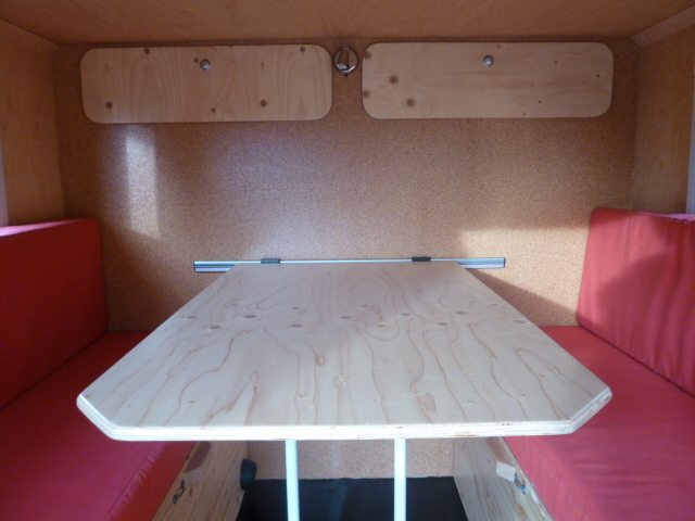 Platz für Origo 2 Flammen Spiritus Kocher, ohne den Kocher. Sitzecke zum Bett umbaubar.