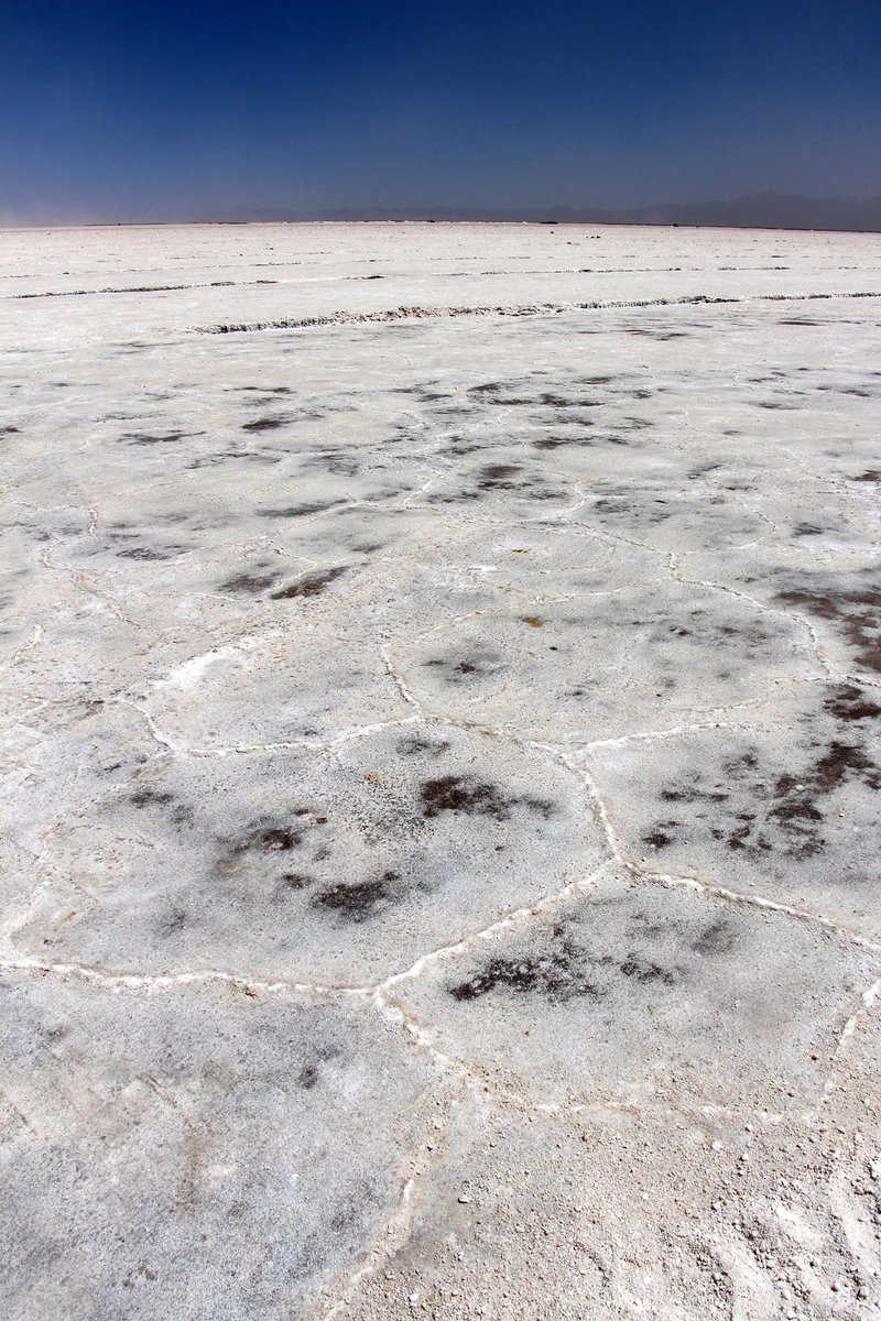 Weiter Richtung Osten. Durch sandsturmige Hochebenen vorbei an einem stellenweise blütenweißen Salzsee.