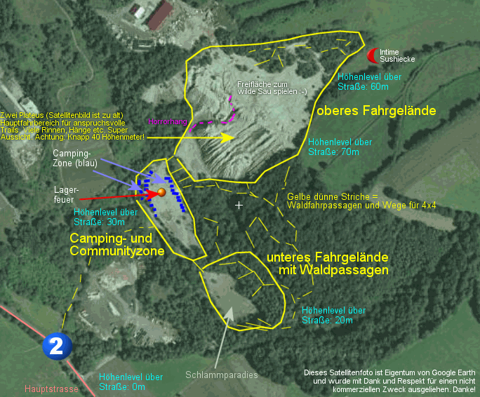 Achtung, wichtige Auflage: Anreise am Donnerstag. Aber an diesem Tag noch keine lauten Aktionen, wie Musik oder Vollgas durchs Gelände. Da es (wie erwartet) nach uns bald Ärger mit wilden Moppedfahrern gab, dürfen wir in der Woche (Donnerstag) noch keinen Lärm machen. Den machen wir sowieso nicht, aber ich bitte darum, Donnerstag als Anreise und Willkommenstag zu nutzen und sich respektvoll gegenüber der Gegend zu zeigen / Geländefahren mit Krach zu vermeiden. Dieter liegt das sehr am Herzen, weil das Gelände ja kein offenes Offroad-Terrain ist und er und sein Club es gerne noch eine ganze Weile nutzen möchten.
