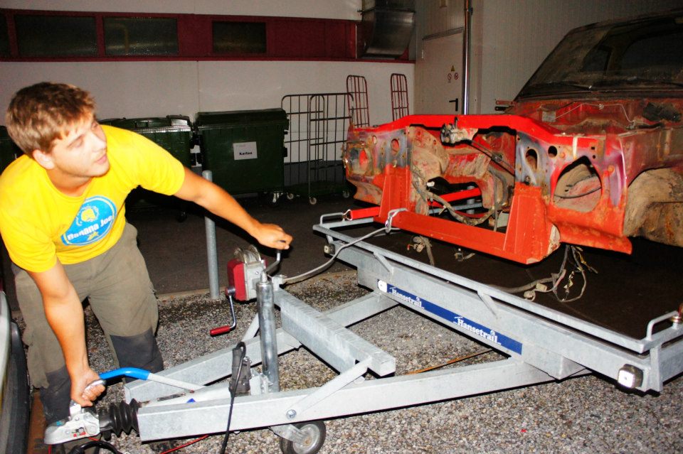 So nun aber zum eigentlichen... mit liebevoller Unterstützung von Toby und seinem Dad hatte ich zwei Stunden nach meiner Ankunft eine akzeptable Ersatzkarosserie, samt Türen, Kotis, HT, ST, Motorhaube und Dach samt A und B Säule, 3 Stoßstangen und zwei Heckklappen! Und jedes einzelne Teil davon in erheblich besserem Zustand als meine...für 2 Kisten (dt. Kästen) Bier!!!