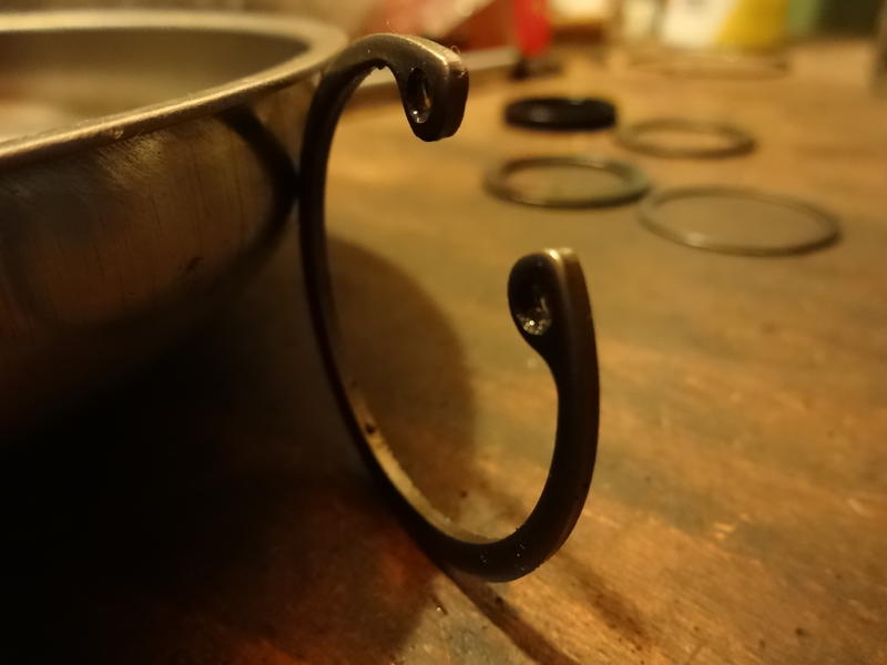 Den Segering hab ich mir genau angeschaut und festgestellt, daß er an der Außenkante ganz leicht konisch ist. Also hab ich ihn mit der breiteren Seite nach außen eingesetzt. das ist auch die leicht schärfere Kante.