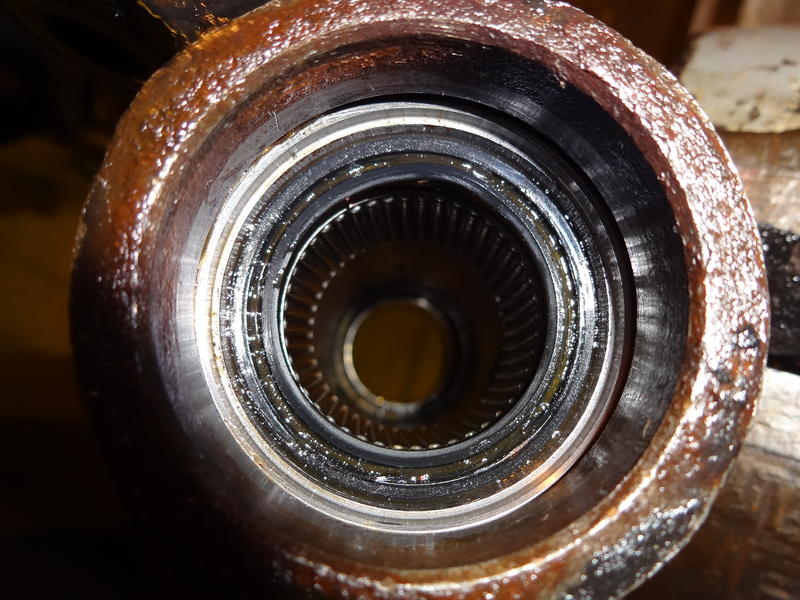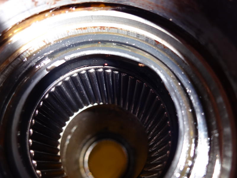 ich habe die Nadeln der Nadellager mit etwas Fett eingesetzt, damit sie beim Einschieben der Segmentwelle an Ihrem Platz bleiben. Dieses Fett hat sich, wie ich jetzt sah, unten an den Dichtringen gesammelt. Vielleicht ist es dieses Öl-/Fettgemisch, das was für Dein Empfinden nicht gut aussieht.