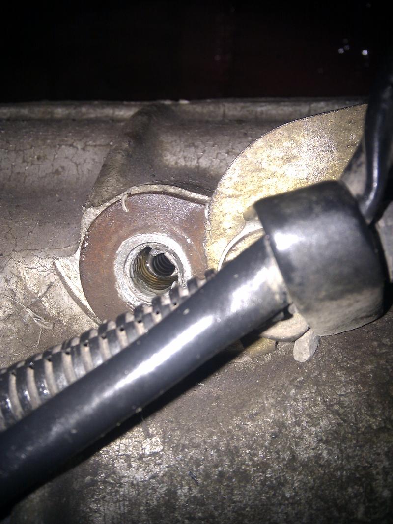 Von der Beifahrerseite aus ließ es sich ertasten. Die Feder war nicht gebrochen. An beiden Seiten ist sie allerdings etwas plattgedrückt / ausgefranst. Die Kugel habe ich nicht rausbekommen, versuche es morgen evtl. nochmal mit einem Magneten. Dann kann ich auch die Länge der Feder mal messen.