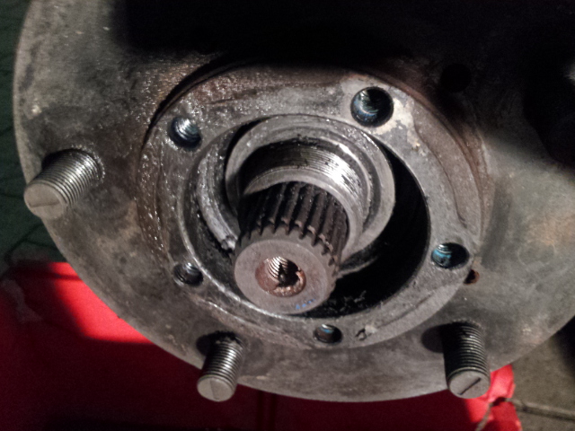 Die 52'er Radmutter kamm ohne Probleme raus so als ob die schon ganz lose war. Die dahinter liegende Scheibe war dann dermaßen verkanntet das wir ewig gebraucht haben bis diese mal draußen war.