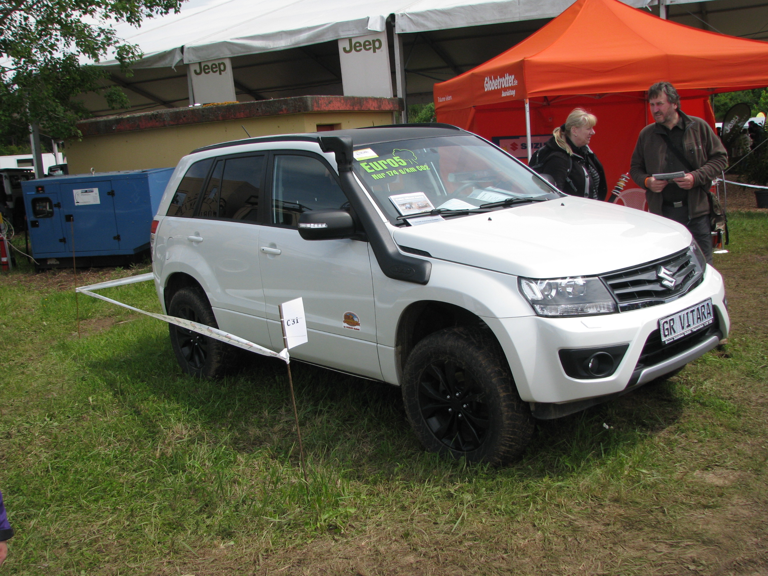 der Grand Vitara auf dem Bild hat ein Camlini-Fahrwerk drin, was das Fahrzeug um rund 3 Zoll anhebt (knappe 8 Zentimeter).