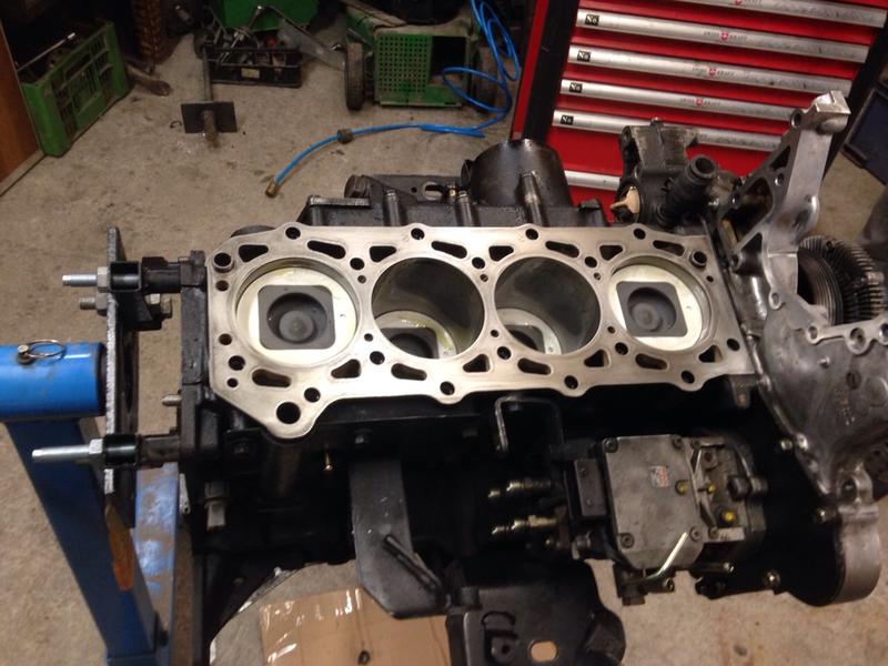 Haben endlich den Block mit den neuen Kolben und den nachgearbeiteten Laufbuchsen von unserem örtlichen Motorenbauer bekommen.